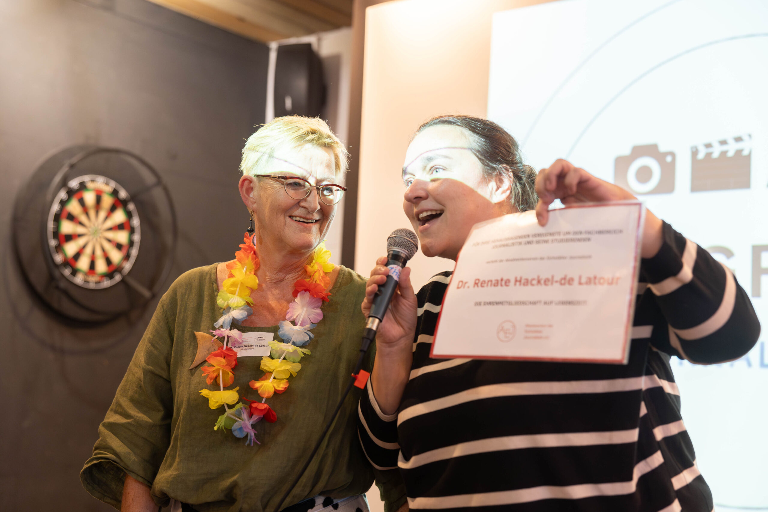 Rund 100 Studierende, Mitarbeitende und Absolventinnen waren in der Theke und haben gemeinsam vor allem eine gefeiert: Renate Hackel-de Latour. Nach 40 Jahren geht die akademische Direktorin in den Ruhestand. Schon früh am Abend wird klar: An ihre Beliebtheitswerte kommt die nächsten 40 Jahre wahrscheinlich keiner ran. Mehrfach stehende Ovationen, „Renate“-Rufe – fehlte nur noch,…